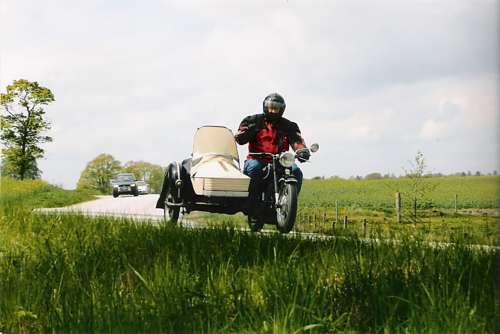 Föregående | Tillbaka till galleriet | Nästa Kjell Melén, Katrineholm på en BMW R25/3 på väg mot målet.