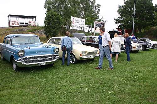 Många vackra bilar på finbilsparkeringen!