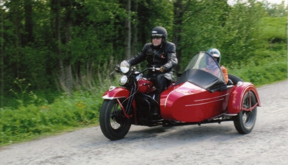 Föregående | Tillbaka till galleriet | Nästa Bengt Petersson med HD "storsida" 1200cc 1947, på väg mot målet i Norrköping.