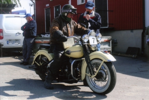 Föregående | Tillbaka till galleriet | Nästa Göran Sjöwall skickar iväg Rolf Larsson, Söderköping,som körde HD 750-1942.
