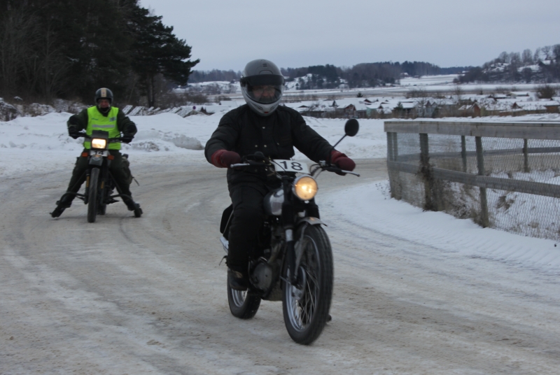 ![]() Nr 18 Mats Karlsson, tätt följd av nr 14 Hans Varverud, framme vid målet på Kråkvilan. |