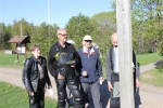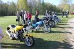 Samling vid IFK:s Idrottssektions klubbhus. Några hade anlänt redan före 08.00. Cirka tio hojar, samt några bilar.